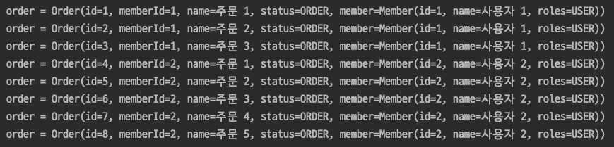 정상적으로 각 Order 에 필요한 Member 를 같이 가져오는 것을 확인할 수 있습니다.