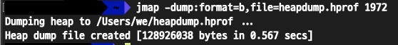 $ jmap -dump:format=b,file=[FILE_NAME] [PID]